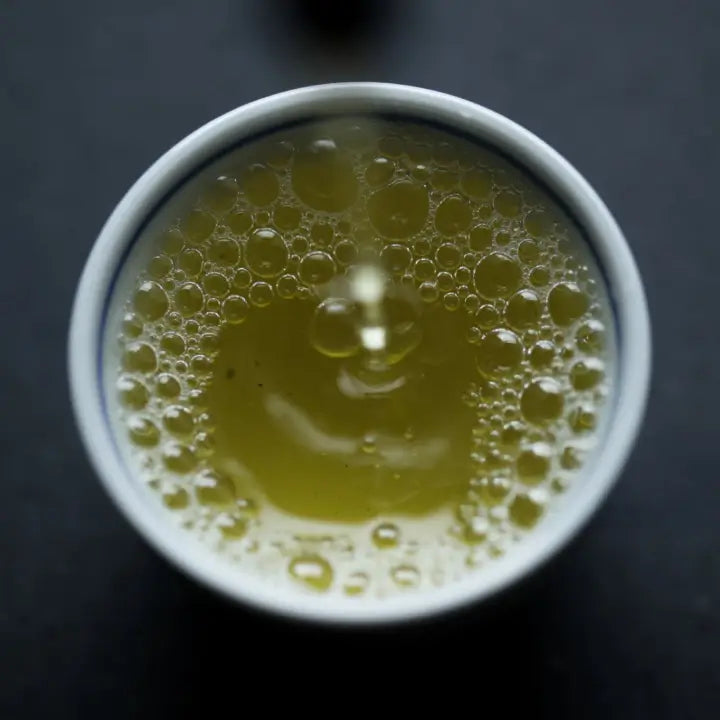 These are the so called deep steamed sencha teas, made from leaves that have been steamed for between 80-200 seconds. During this time, the cell membranes of the leaf are broken down allowing more of the leaf to flow into the cup. Here you will see smaller leaves and the color will be a vibrant, cloudy green. The flavor of these fukamushi teas are juicier, with notes of tropical fruit, steamed vegetables and edamame.