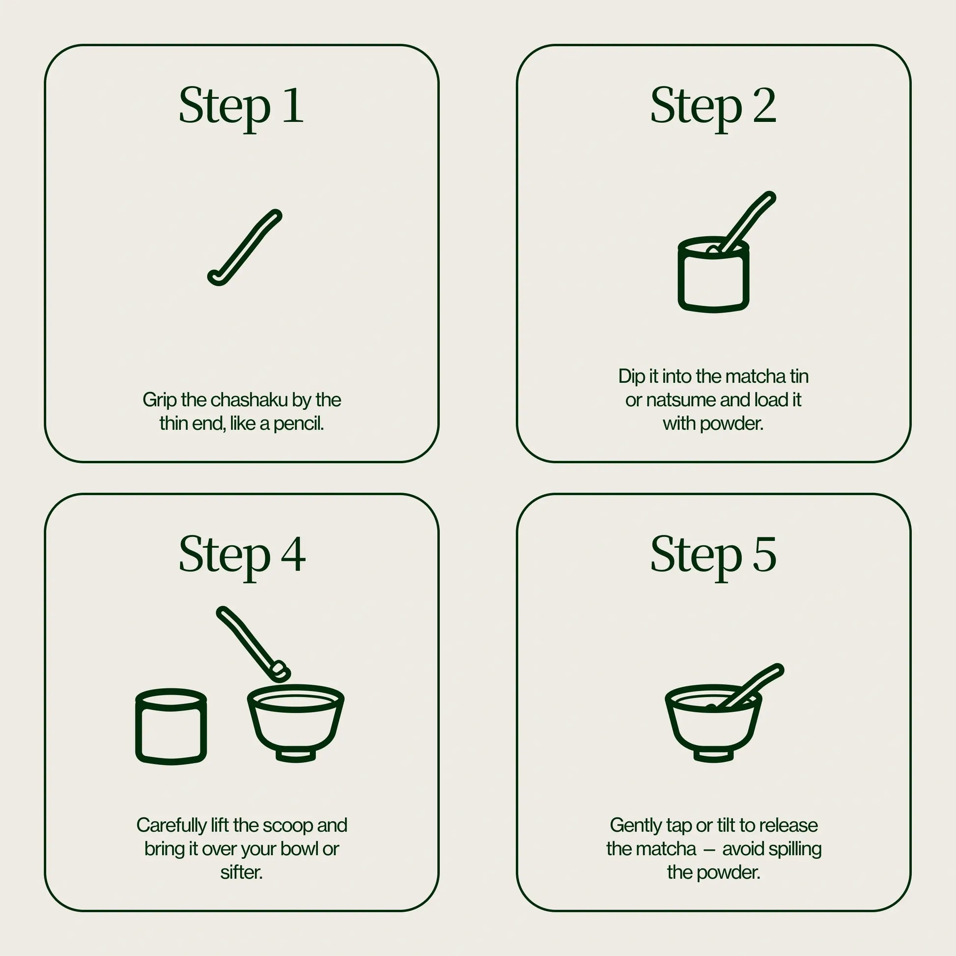 Gently tap or tilt to release the matcha — avoid spilling the powder.